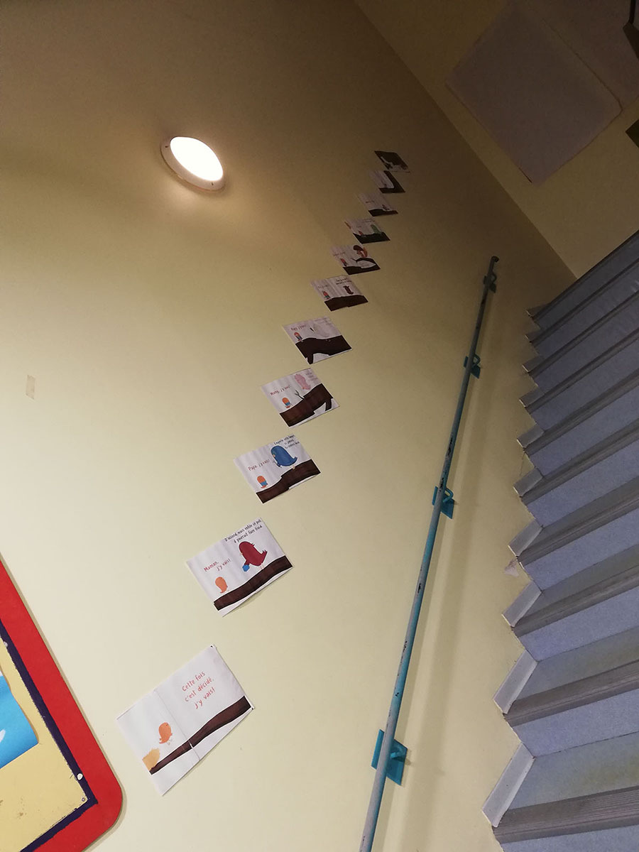 L’objectif est d’amener l’enfant à se sentir en sécurité d’abord au sein d’un petit groupe (où se trouve sa référente) puis au sein de groupes de plus en plus grands (celui de sa section puis celui de l’établissement).